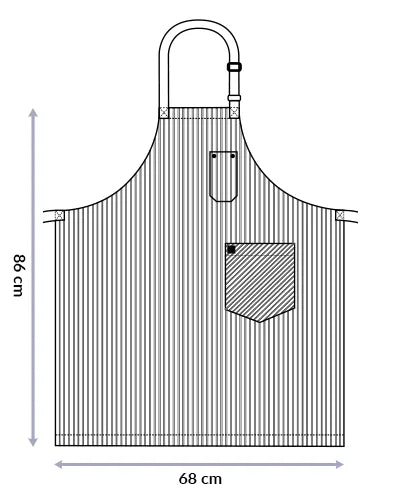 PARIS is a true classic bib apron with its black or navy pinstriped fabric. The PARIS bib apron is reminiscent of cafes and restaurants along the Seine in Paris, understated and classy.