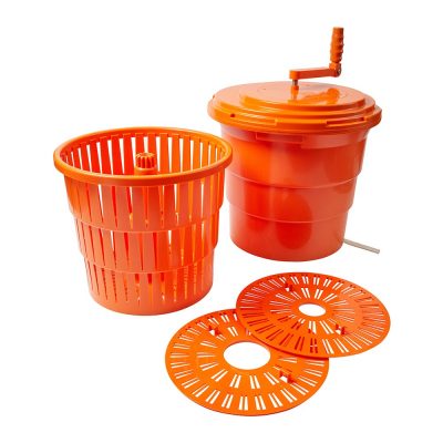The Large Orange Salad Spinner is a commercial grade tool that is essential in high turnover kitchens. The spinner has 20lt non skid capacity, it is durable, meets all Australian food safety regulations. The spinner features two tiers for complete separate spinning of raw food. The spinner is ideal for cleaning cabbage, lettuce, kale, tomatoes, grapes and more. The spinner has a strong handle for easy use and cleaning of raw food for any commercial business or busy home kitchen.