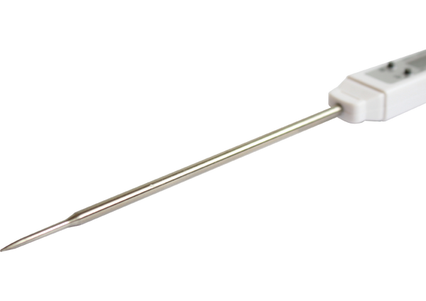 The monitoring of the core temperature during the barbecuing or roasting of meats, the safe temperature check of baby food, the preparation food in the bakery, patisserie or in the catering industry, the control of the refrigerated counter at the butcher’s or in the supermarket, stock checking or the inspection of incoming goods in the canteen kitchen or elsewhere in the food industry. The temperature of food of any kind can be measured quickly, accurately and easily with this handy thermometer. Simply plunge the probe into what needs to be measured and within a very short time the device delivers accurate measurement results. (125mm probe length)